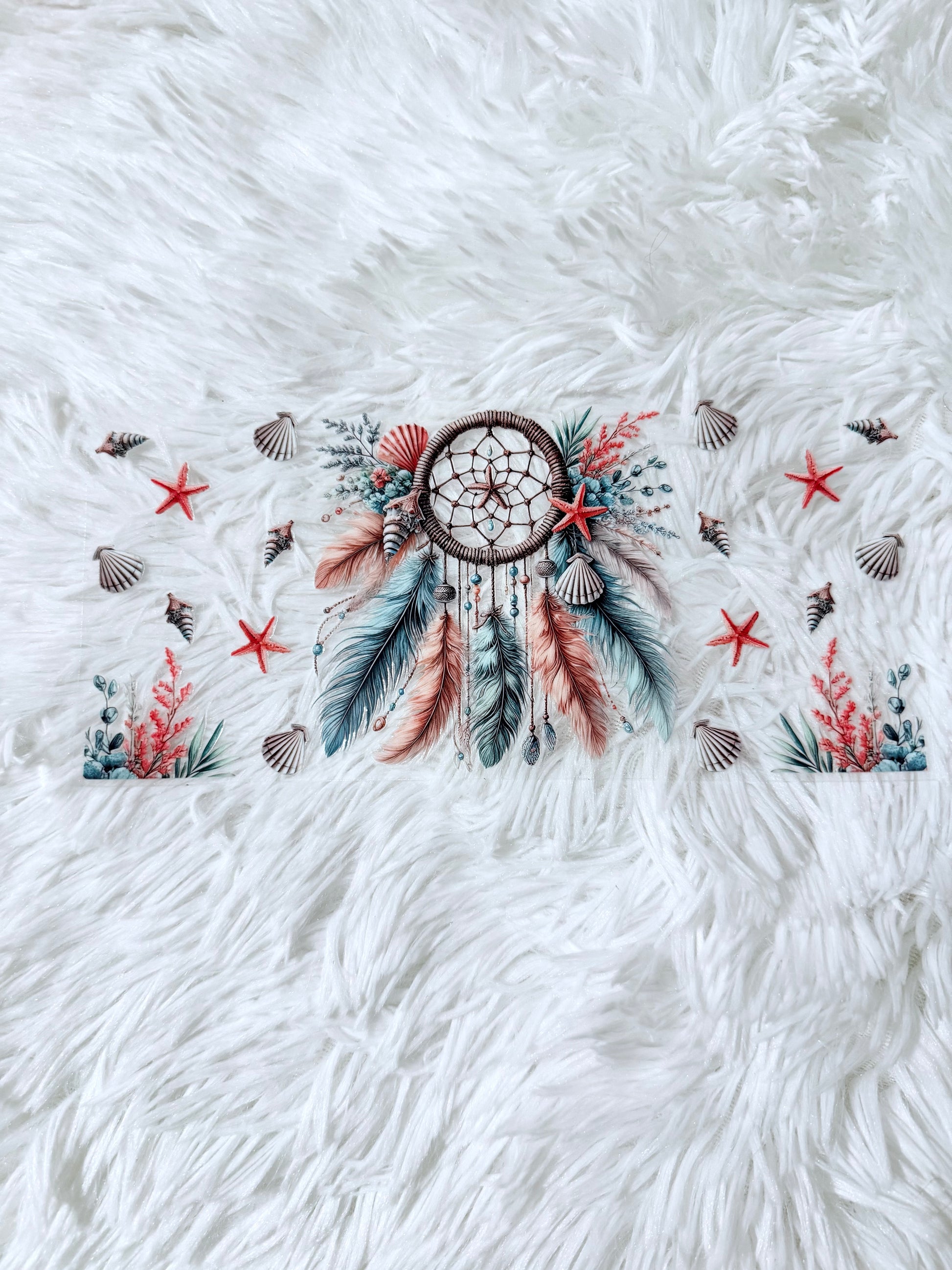 B3. Teal Coral Seashell Dream Catcher