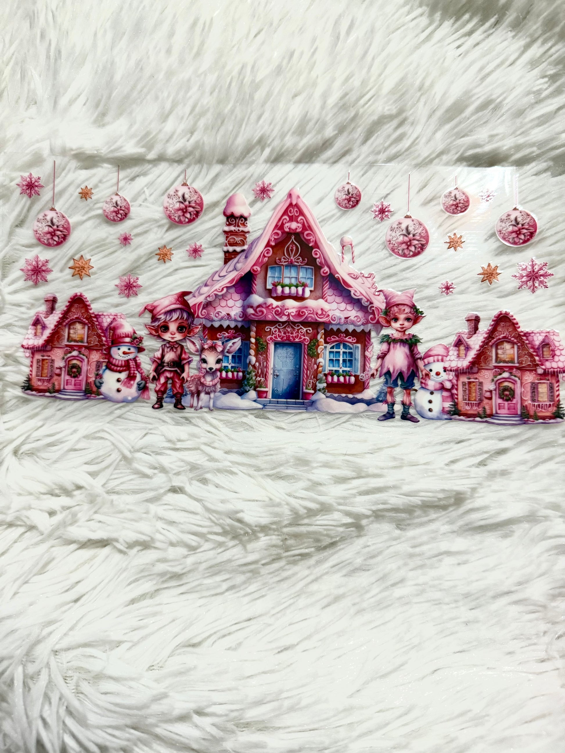 W123. Winter Pink Candyland Elf House Northpole Tumbler Wrap